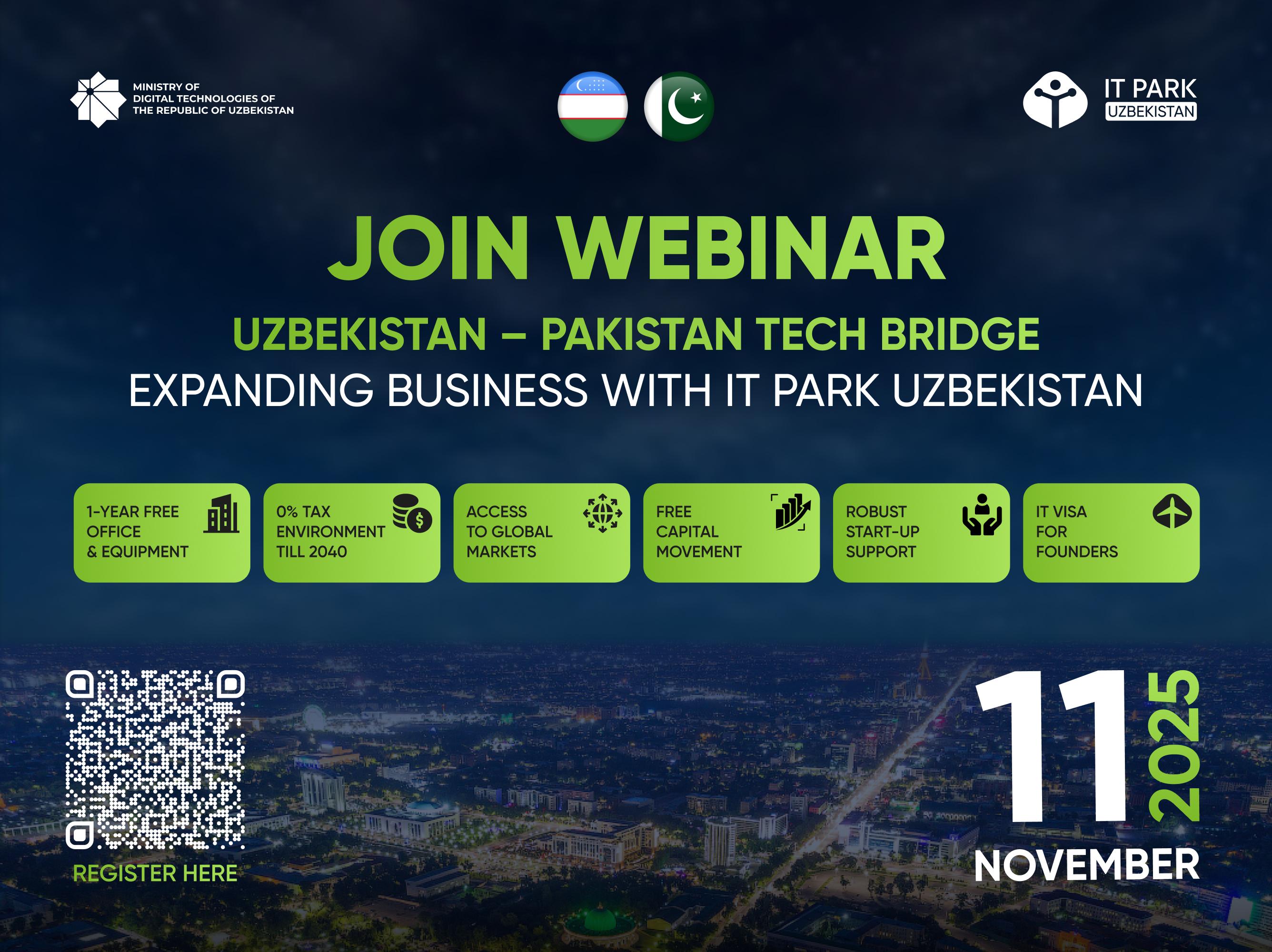 Join us for a compelling online event — “Uzbekistan – Pakistan Tech Bridge: Expanding Business with IT Park Uzbekistan” — designed specifically to connect Pakistani tech firms, investors, and entrepreneurs with the unique opportunities of Uzbekistan’s digital economy. This webinar will serve as a platform for strategic dialogue, market entry insights, and partnership building.