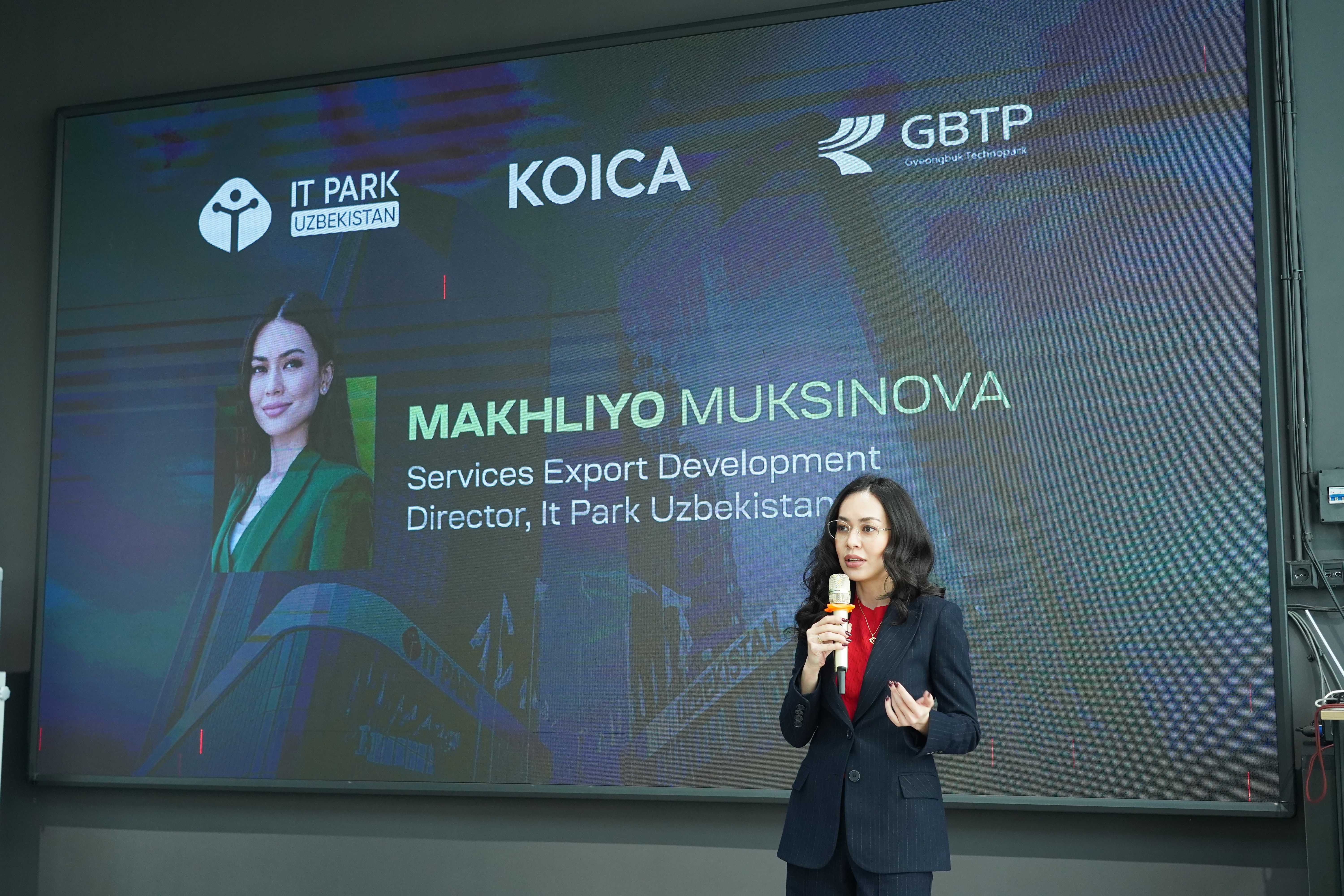 Among the speakers were Pak Sol Ri, Deputy Director of the KOICA Office in Uzbekistan; Makhliyo Muksinova, Services Export Development Director of IT Park; experts from GBTP; and representatives of the Korea Technopark Promotion Association (KTPA) and DAINLEADERS. They emphasized the project’s importance for developing human capital, enhancing technological competencies and strengthening Uzbekistan’s role within the international IT community.