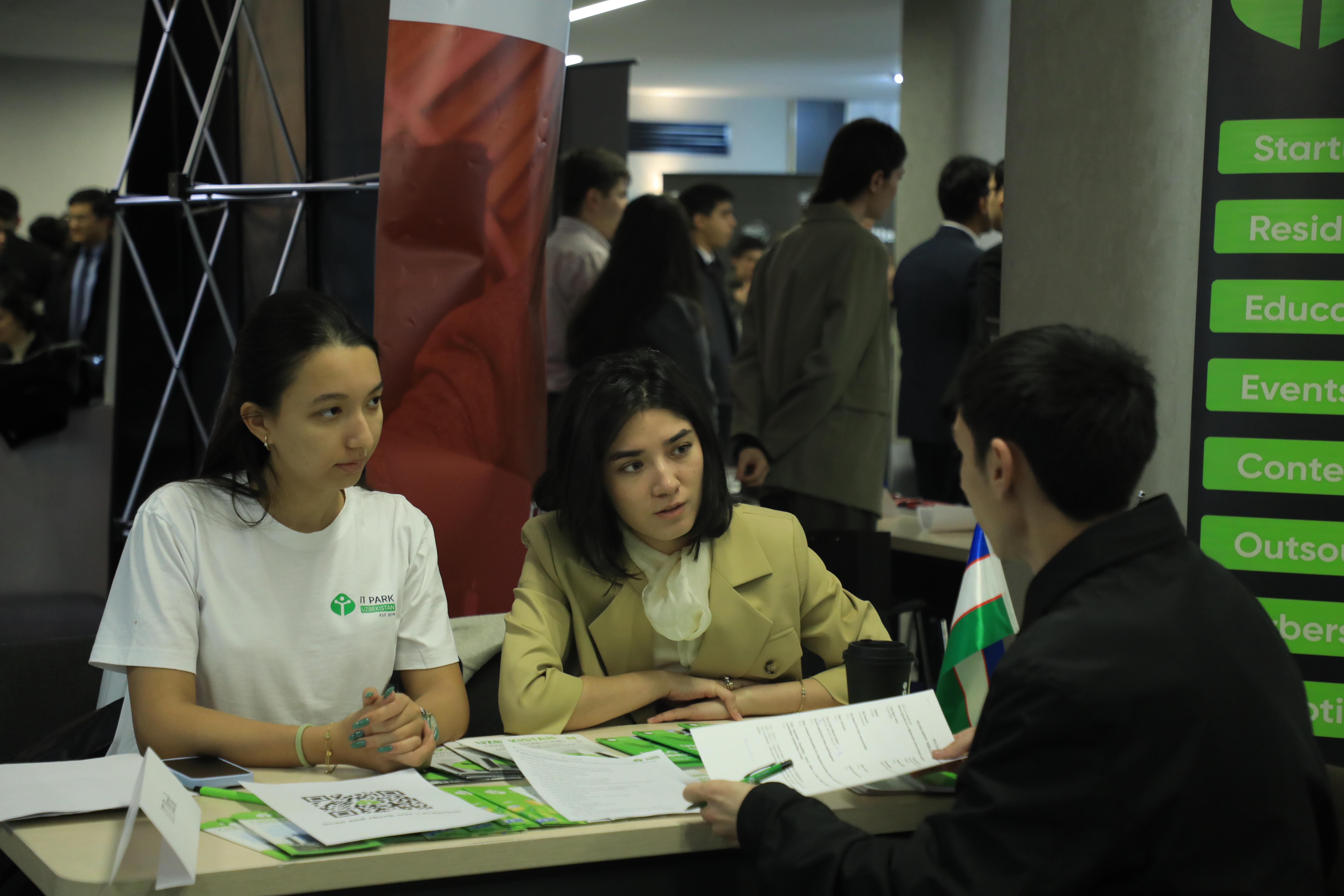 The IT Park Uzbekistan booth attracted considerable interest — many students expressed a desire to undertake an internship, learn more about the technopark’s ongoing projects, and explore opportunities for long-term engagement.