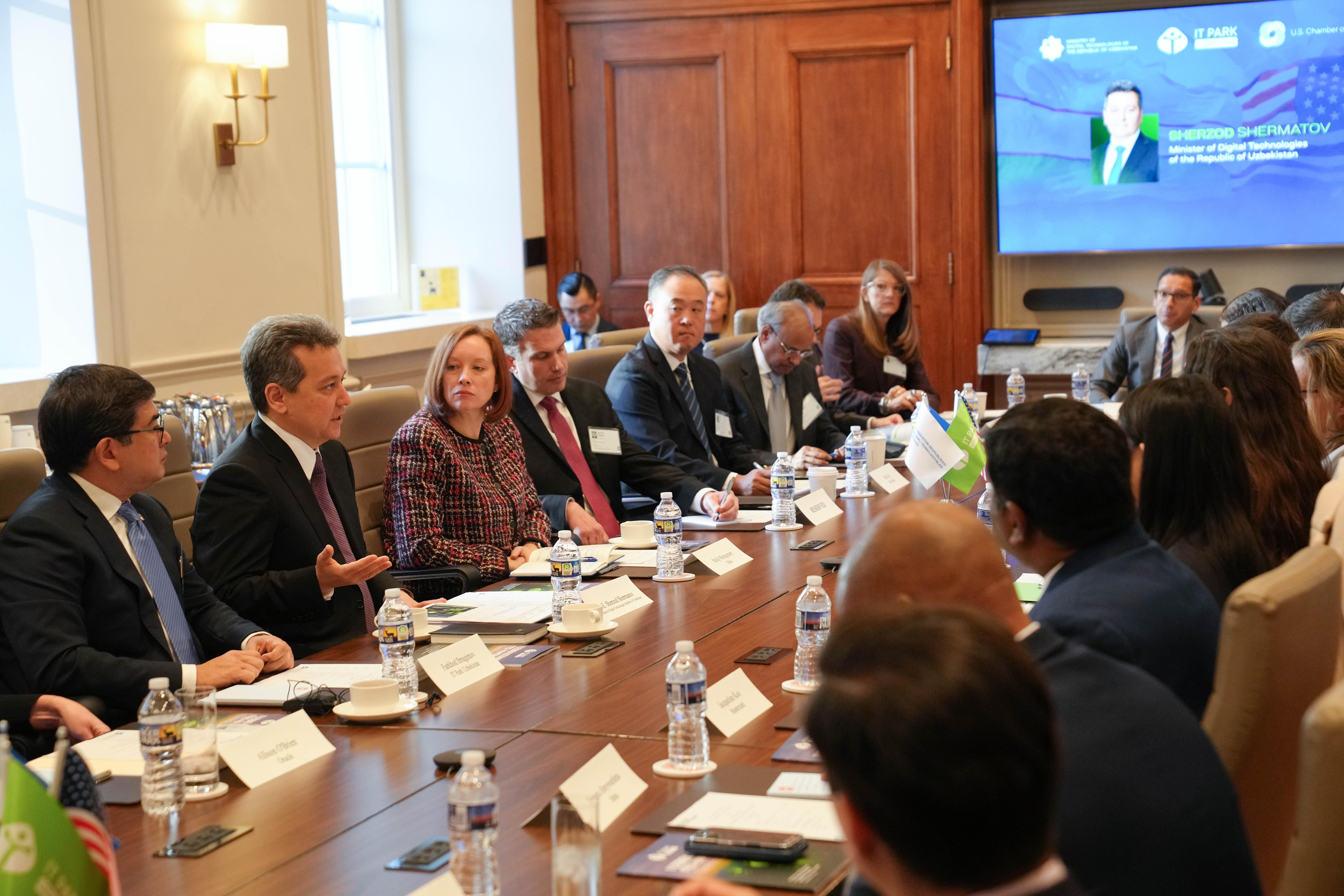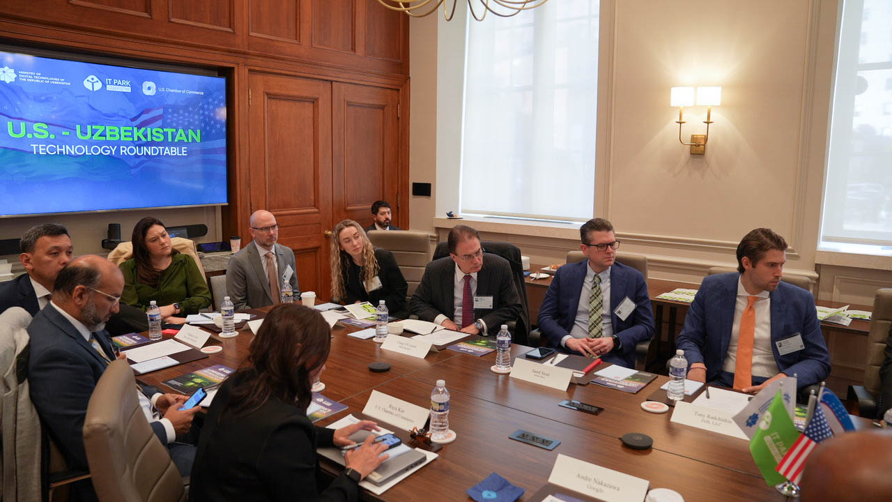 The event was organized in Washington, D.C. by the U.S. Chamber of Commerce, the Ministry of Digital Technologies, and IT Park Uzbekistan. The session was moderated by Jennifer Miel, Vice President for Central Asia and the Middle East at the U.S. Chamber of Commerce.