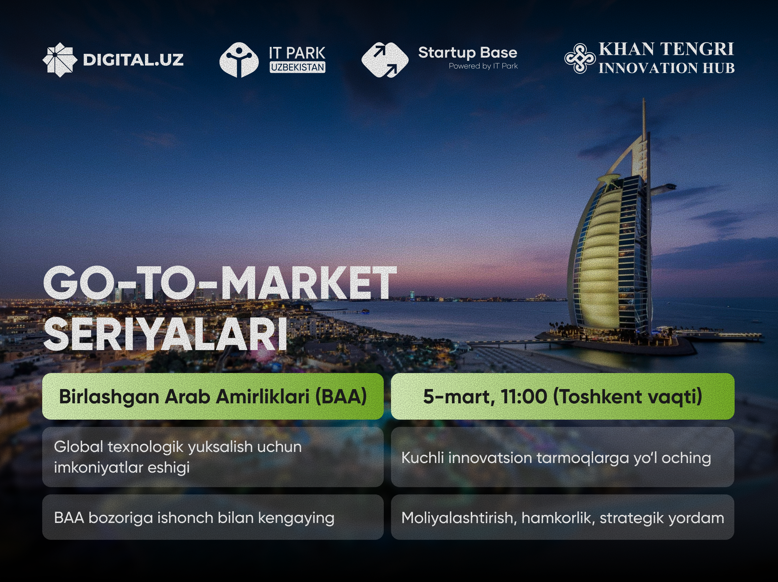 support instruments, accelerator opportunities, and how innovative companies can engage with the program in the UAE. The online session will begin at 11:00 AM (Tashkent time).