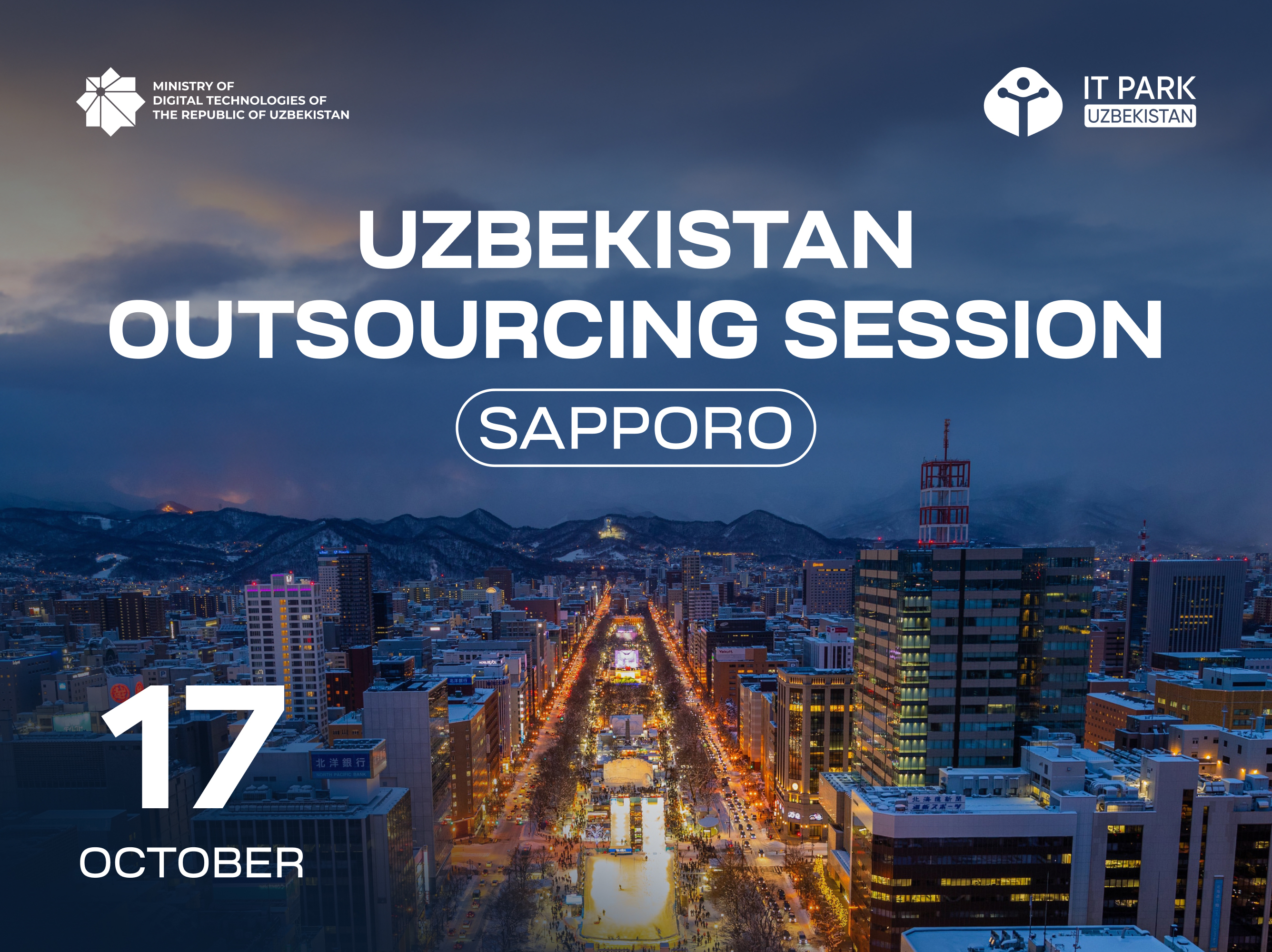 Uzbekistan Outsourcing Session in Sapporo 2025, hosted by the Ministry of Digital Technologies of Uzbekistan and IT Park Uzbekistan. This event will highlight the exceptional opportunities emerging from Uzbekistan as a premier outsourcing destination, with a particular emphasis on the growing cooperation between Japan and Uzbekistan.